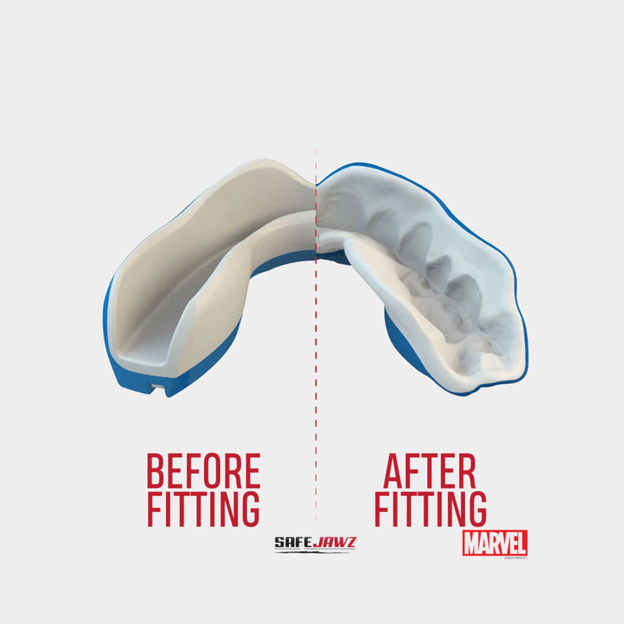 SAFEJAWZ Marvel tandskydd är för dig som vill kombinera oslagbart skydd med en stil som hyllar dina favoritkaraktärer. Utvecklat för att ge perfekt passform och stötdämpning vid hårda smällar.