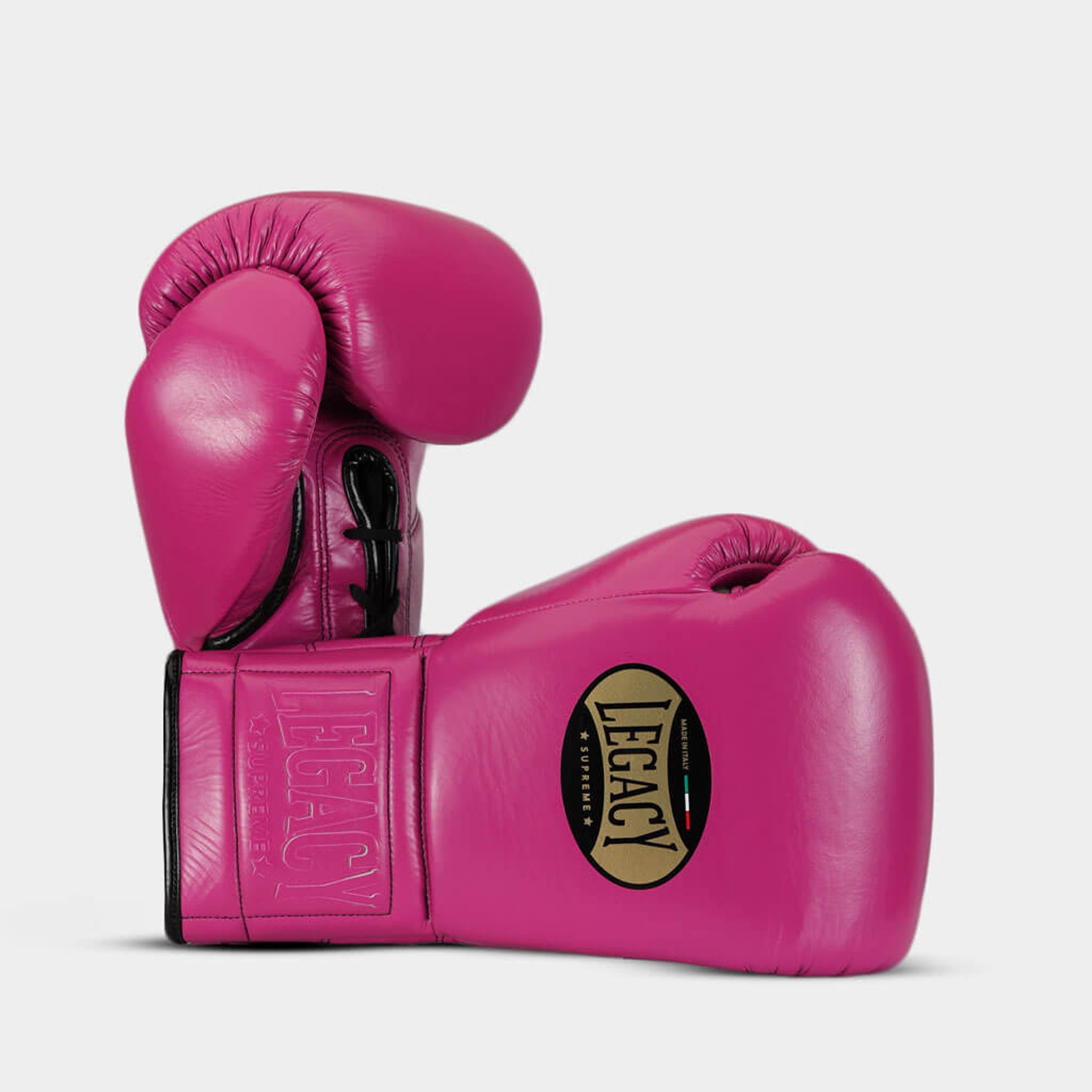En exklusiv boxningshandske i italienskt läder med snörning och präglad logga. Ger oslagbar balans mellan stil, komfort och skydd för seriösa fighters.