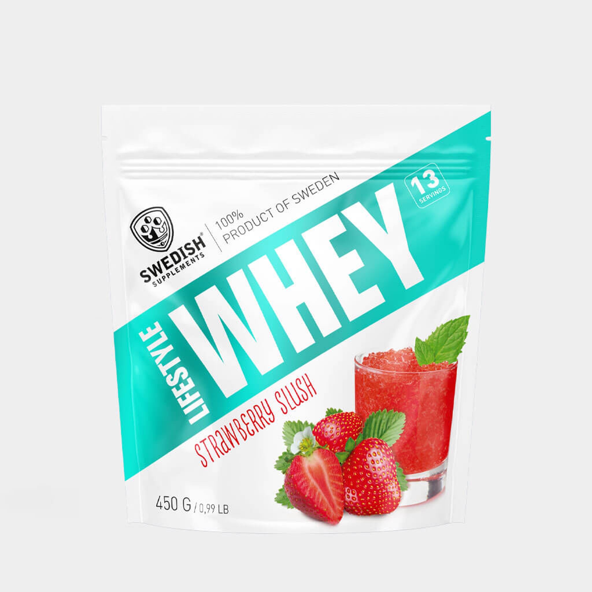 Swedish Supplements Lifestyle Whey i smaken Strawberry Slush är ett välsmakande vassleprotein med hela 13 fulla portioner per påse. Ett smidigt och prisvärt alternativ med ca 75 % proteinhalt, utvecklat för att hjälpa dig bygga och bevara muskelmassa.